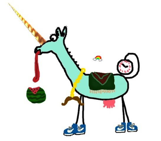 This is a Llamicorn wearing Nike Blazers. He was drawn by a member of the band Glass Animals.